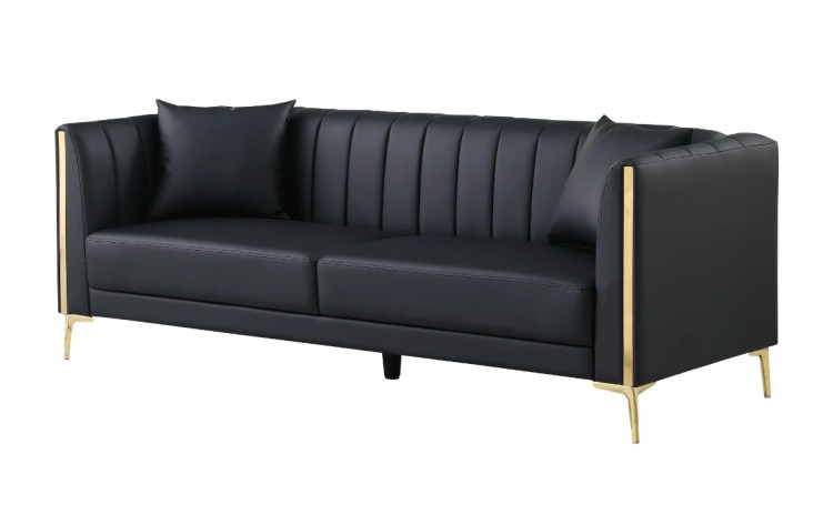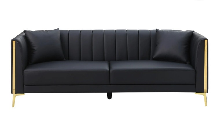 A stylish sofa with gleaming gold legs that elevates any event seating area. This rental piece pairs classic comfort with a touch of glamour: cushioned seating and a supportive back create a welcoming place for guests to relax, while the metallic gold legs add refined visual interest and a modern, upscale feel. Ideal for lounge setups, VIP areas, bridal showers, cocktail parties, photo backdrops, or corporate receptions, it blends readily with neutral or bold décor. Durable enough for repeated use at events, it offers both function and fashion—comfortable seating that makes a tasteful statement. Sofa for rent in Knoxville, TN.