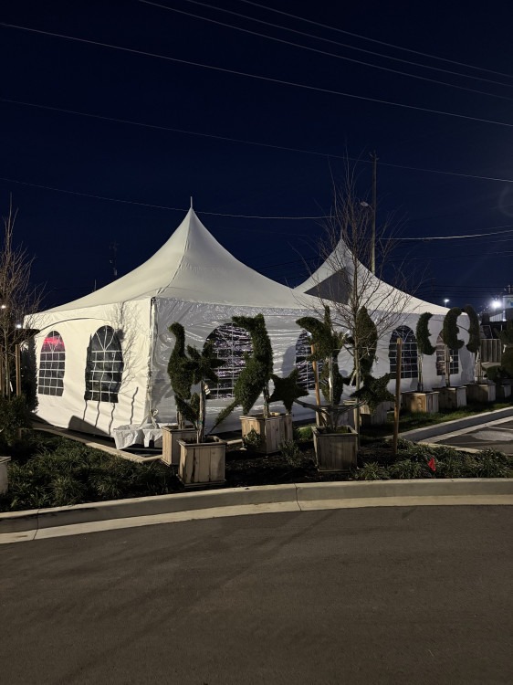 20X20 High Peak Tent20’ Window Sidewall:20X20 High Peak Tent1Dropdown03111681_30434250000A 20x20 high-peak tent that combines elegant style with practical coverage — a peaked canopy that rises to a graceful center point, offering roomy head clearance and a clean, polished look for weddings, parties, corporate events, or backyard gatherings. The square footprint shelters tables, chairs, or buffet stations beneath sturdy metal legs and a weather-resistant canopy, creating a defined, shaded space while remaining open along the sides for airflow and easy guest movement. Tent Rentals in Knoxville, TN. Price includes set up and teardown on grass where stakes can be used. Setup on a hard surface is extra. White solid sidewalls are available for an extra fee. Seating Capacity: